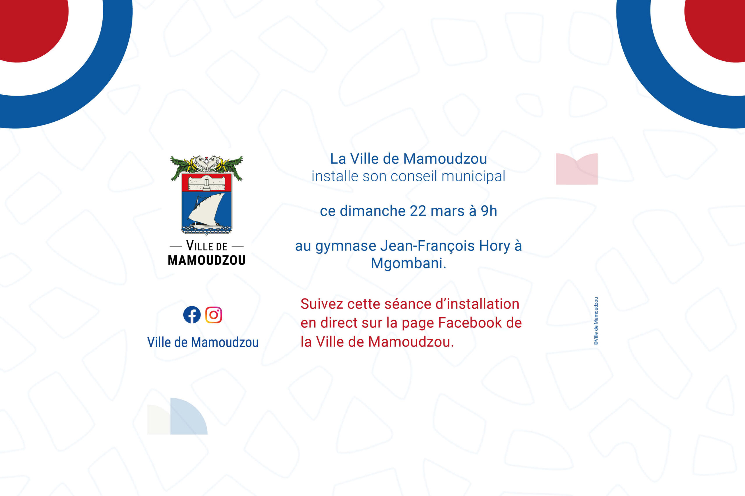 La séance d’installation du conseil municipal de Mamoudzou sera également retransmise en direct sur la page Facebook de la Ville de Mamoudzou à partir de 9h.