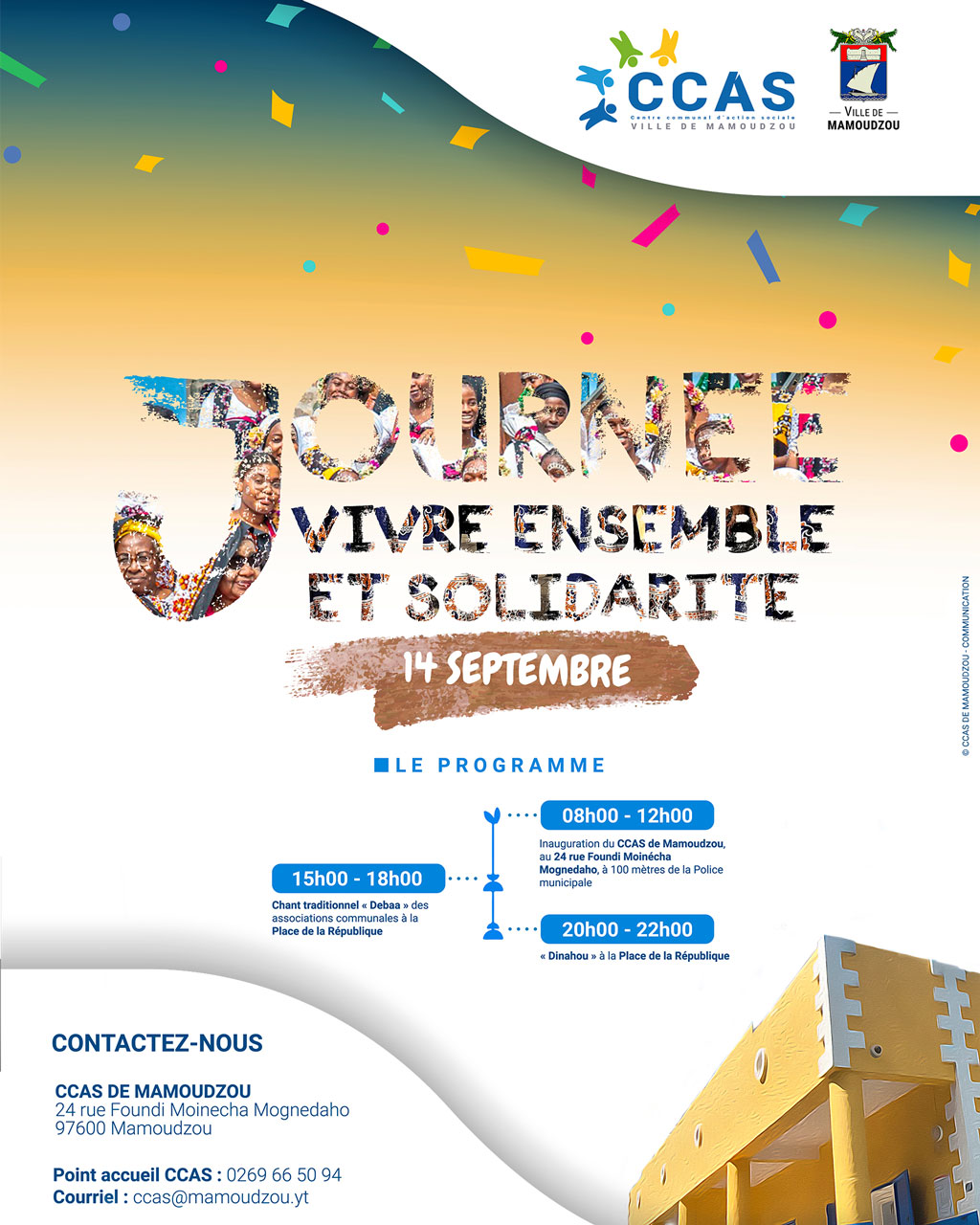 Cet évènement rassemble les citoyens de Mamoudzou autour de sujets de société. Cette troisième édition vous permettra d’en savoir plus sur l’accès aux droits et les actions en faveur de la solidarité mises en place à Mamoudzou. Différentes activités rythmeront cette journée afin de favoriser la cohésion sociale au travers d’animations culturelles.