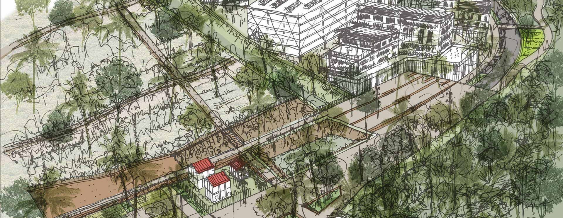 La nature sera au cœur du quartier grâce à une rivière restaurée, un coteau cultivé, des espaces de détente et un grand parc agroforestier.